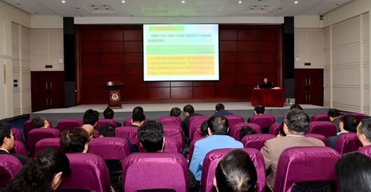 3月23日上午,贵州大学召开传达贯彻2018年全国“两会”精神大会。校领导陈坚、宋宝安、王红蕾、骆长江、金道超、向淑文、张覃出席会议。全校在职处级干部,各民主党派主要负责人,院士、省核心专家和省管专家,学科学术带头人、国家和省部级重点实验室(工程中心)负责人,教师代表、学生代表等参加会议。全国人大代表、中国工程院院士、副校长宋宝安教授,全国政协委员、民盟贵州省委员会副主任委员、林学院院长丁贵杰教授传达全国两会精神。会议由校党委副书记骆长江主持。