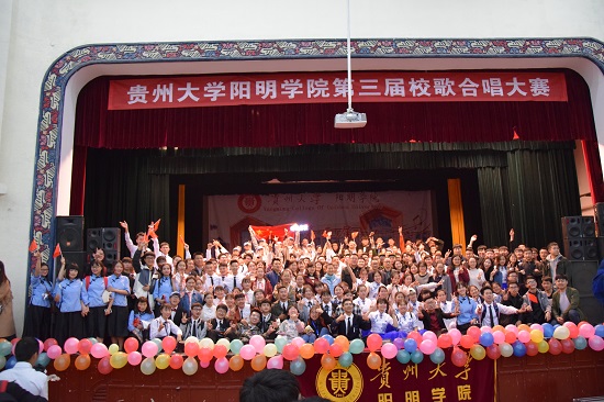 贵大新闻网讯(记者团 胡明玥 潘巧玲 报道|摄影 张发英 张贞宇)3月29日晚,由阳明学院主办,阳明学院团委、学生会承办的第三届校歌合唱大赛在我校北校区大礼堂举行。阳明学院党副书记李耘、音乐学院青年教师王蕾,贵州财经大学团委书记李文龙,韩国诚信女子大学艺术学博士全海峰等任本次大赛评委。
