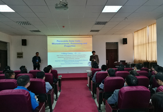 程一兵学术报告题目为《Perovskite Solar Cells—Microstructure, Processing and Properties》。他首先从钙钛矿结构及光伏电池的发展进行介绍,提出目前制备方法存在的问题并发明一种简单而高效的制备方法。他从材料科学原理出发研究钙钛矿缺陷对性能——转化效率的影响,获得了重要进展和国际同行的高度认可。