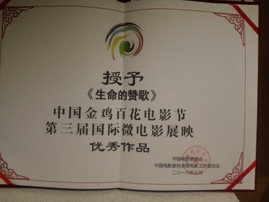 贵大新闻网讯 3月28日,在海口市中国金鸡百花电影节第三届国际微电影展映颁奖盛典上,我校与贵阳一民影视艺术有限公司、贵州广播电视台联合出品的纪录片《生命的赞歌》获得优秀作品奖,这是本次展映活动的最高奖项。