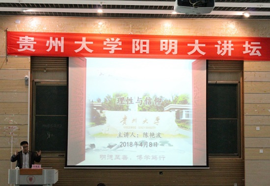 贵大新闻网讯(记者团 蔡佳 杨梅 |摄影 吴庆花)4月8日下午,由阳明学院主办的第三期阳明大讲坛在西区圆形报告厅举行,本次讲座以“理性与信仰”为主题。我校哲学社会科学研究院副院长陈艳波担任讲座主讲,阳明学院团委办公室袁靓文老师担任主持人。
