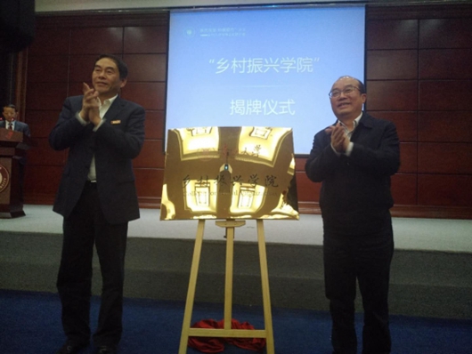 贵州省副省长吴强,贵州省政协副主席、贵州大学党委书记、校长陈坚为“乡村振兴学院”揭牌