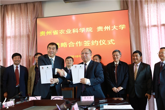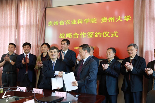 5月6日,贵州大学与贵州省农业科学院战略合作签约仪式在省农科院会议室举行。双方就人才培养、科研攻关、平台共建、信息共享、人员交流等签订合作协议。
