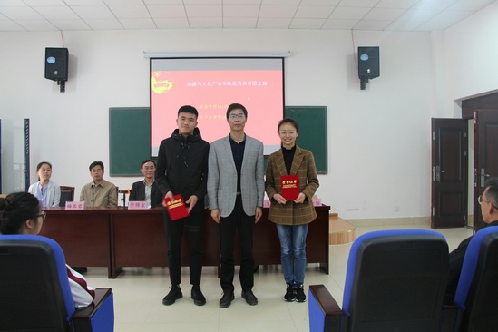 贵大新闻网讯(旅游与文化产业学院 方遗萍 报道| 摄影 张丽)为进一步鼓舞和激励团组织、团员青年与团干部创先争优,奋发有为,表彰他们在共青团岗位上做出的贡献,5月7日,我校旅游与文化产业学院在西校区雅正楼115教室举行五?四表彰大会。旅文学院党委书记刘剑、院长李锦宏、党委副书记王丽、副院长梅其君、学生科科长吴智恒、辅导员谢爽出席会议,王丽主持大会。