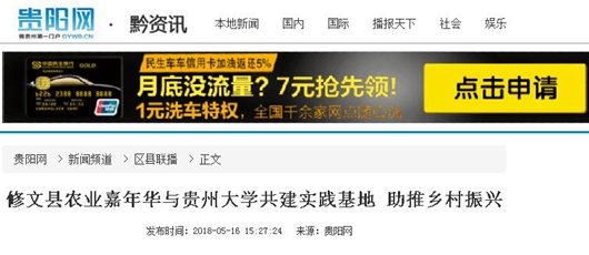5月15日 ,贵州大学生命科学院教学实习实训基地的揭牌仪式在修文农业嘉年华举行,从此标志着修文县农业嘉年华成为贵州大学生命科学院实践基地。