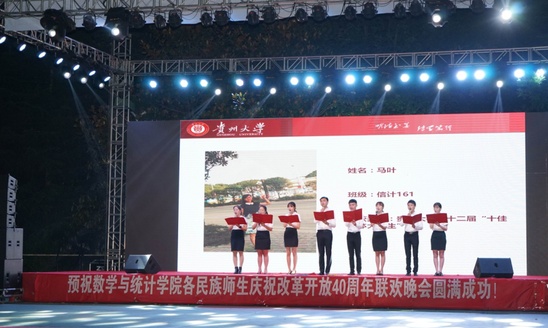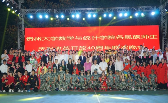 贵大新闻网讯(数学与统计学院 赵黔宁 周贞旭 报道|摄影 陈朝东 杜帅)6月15日19:00,数学与统计学院各民族师生庆祝改革开放四十周年联欢晚会在北校区篮球场隆重举行。晚会在彝族同学卢启永《唱支山歌给党听》的深情演唱中拉开帷幕。学校党委骆长江副书记、副校长向淑文教授应邀出席晚会、并为龙狮点睛。