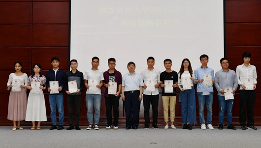 贵大新闻网讯 6月22日下午,贵州大学2018届校友工作班级联络员聘任仪式在北校区行政楼报告厅举行。校长宋宝安出席仪式并为第三批校友工作班级联络员代表颁发聘书。