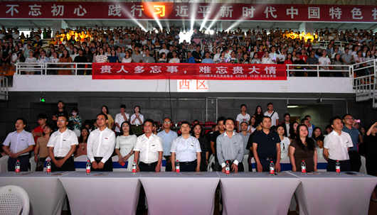 贵大新闻网讯 6月25日晚,我校“筑梦青春·砥砺黔行”2018毕业晚会在北校区体育馆举行,校长宋宝安院士、纪委书记汪海波、副校长向淑文与3000多名师生一同观看了晚会。