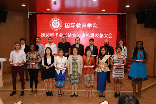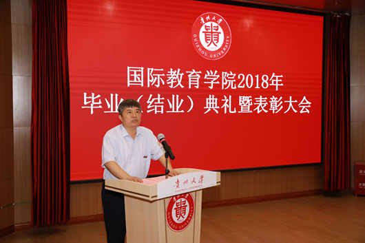 7月4日,贵州大学2018年留学生毕业(结业)典礼暨表彰大会在新校区明正楼212报告厅举行。
