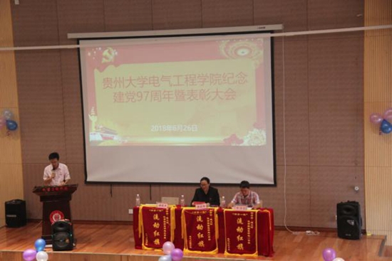 贵大新闻网讯(电气工程学院供稿)为庆祝中国共产党成立97周年,深入贯彻落实习近平新时代中国特色社会主义思想激励电工学院广大师生党员进一步坚定理想信念、砥砺奋进。 6月26日,电气工程学院党委在我校西校区圆形报告厅举行庆祝建党97周年暨表彰大会。