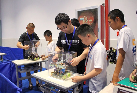 据悉,这次比赛两名选手为一组,选手们前两小时在准备室进行搭车、编程和调试等准备活动,两小时后进行正式比赛。正式比赛前,选手们的机器人需进行称重和尺寸测量,机器人出发时重量不得超过25kg,尺寸不得超过250mm长*250mm宽*300mm高。机器人检验合格后,每三组选手同时进行比赛,且每组选手各有三次上场机会。