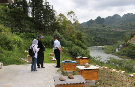 在纳闇村,罗化益书记带领实践队员们对纳闇村整体环境和农产品种植区进行实地调研。在调研中,队员们了解到纳闇村主要农产品有蜂蜜、生姜、辣椒、砂仁和板栗,由于绿水青山、依山傍水的优良生态环境,当地农产品具有质量高、品相好的特点。但是纳闇村由于地理位置偏远、经济落后,面临着好产品推广不出去、市场进不来、人们不了解等众多问题。