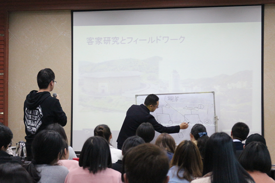 谈到交换研究方面时,他说:“日本是纵向社会,交换文化深刻体现在亲族关系当中,其中最经典的例子就是嫁娶以及注重长子的传承。”接着,小林宏至结合他在厦门大学博士后时期对客家文化的研究,对中日某些交换文化进行对比:“中国的交换酒、递烟是一类颇为有趣、有意义的行为,但日本却没有此类行为。这类行为脱离了物物交换的原始目的,更重视的是交换行为背后的人际交往。”