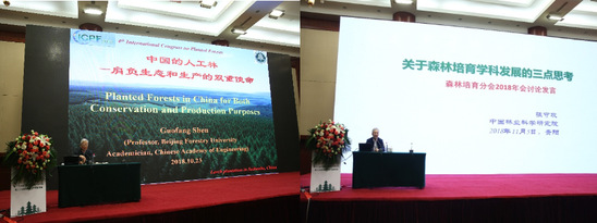 理事长张守攻院士以《关于森林培育学科发展的三点思考》为题,提出目前创新研究必须考虑学科融合,常规育种在森林培育科研创新中起非常关键作用;并对大数据分析方法在森林培育理论和技术创新中的作用进行了展望。