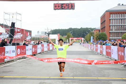 经过一番激烈的追逐,来自竞赛组,体育学院的大二学生谢永通冲过了红线,以15分钟的好成绩拿下第一名的奖牌。30分钟后其他参赛选手们陆续到达终点。