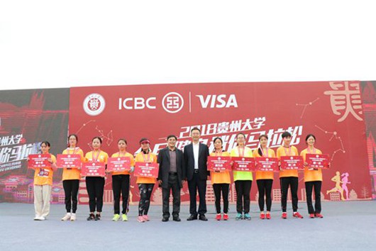 贵大新闻网讯11月13日下午,由贵州大学体育运动委员会、中国工商银行股份有限公司主办,贵州大学体育学院、中国工商银行股份有限公司贵州省分行承办的“2018贵州大学第十四届体育节全民健身迷你马拉松”在西校区阅湖广场举行。副校长王芳恒、中国工商银行牡丹卡中心总裁王都富、Visa大中华区总裁于雪莉和中国工商银行贵州省分行副行长蒋云志作为发枪嘉宾出席活动。
