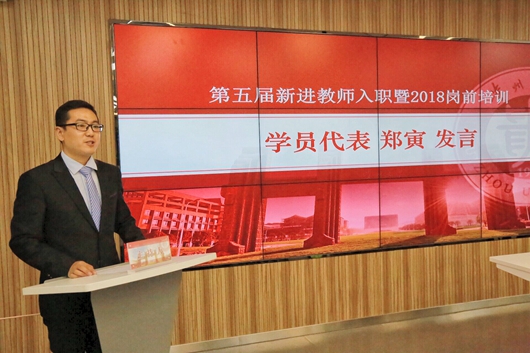 教师代表郑寅发言。他表示,贵州大学始终重视青年教师的培养,近年来更是加大力度建设师资队伍,帮助青年教师提高教学与科研能力。作为青年教师,要抓住学校提供的宝贵机会,发挥长处、弥补不足、加强交流、提升自我。