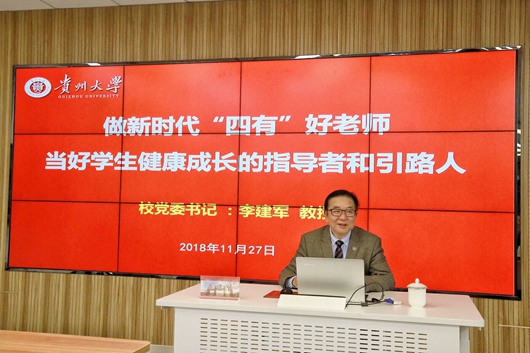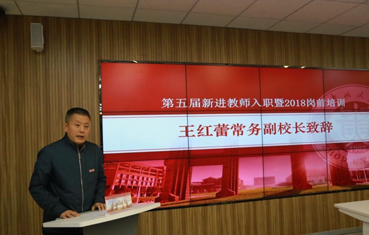 贵大新闻网讯 11月26日上午,我校第五届新进教师入职暨2018年岗前培训开班仪式在新校区德正楼教师培训智慧教室举行。校党委书记李建军、常务副校长王红蕾出席开班仪式。