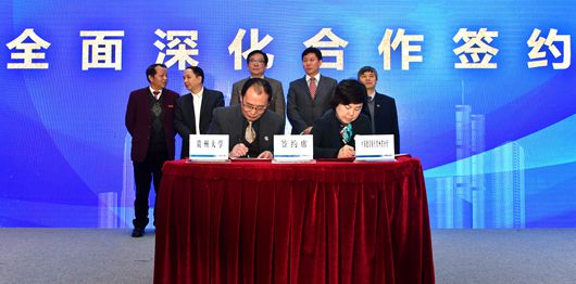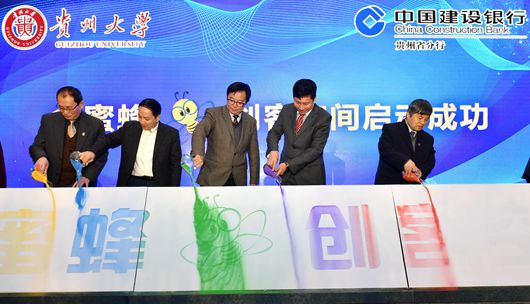 贵大新闻网讯 12月11日上午,我校与建设银行贵州省分行“全面深化合作办学”签约仪式暨“金蜜蜂·创客空间”揭牌仪式在北校区行政楼报告厅举行。
