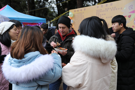 美食节上,“是你的火鸡面呀!”特制的“不挂科烤串”、“人间超值的冰糖葫芦”、“洒家来一碗吗?”、“食·尚小坊”以及来自老挝、泰国、哈萨克斯坦等国的特色小吃前挤满前来品尝美食的师生。