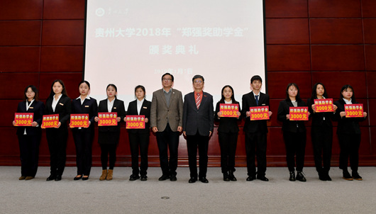 2017年11月,为表彰郑强教授为贵州大学、贵州教育乃至西部教育做出的重要贡献,贵州省授予郑强“贵州省高等教育特别贡献奖”荣誉并给与50万元奖励。郑强教授将50万元奖励悉数捐赠给贵州大学,设立“郑强奖助学金”,用于支持贵州大学学生的教育和发展。基金设立以来,已募集资金逾1100万元。今年是“郑强奖助学金”自设立以来首次颁发,共有20名学生获得奖学金、10名学生获得助学金,颁发总金额达20万元。