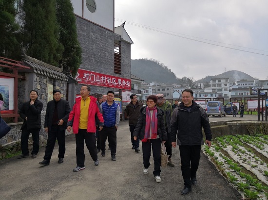 抵达对门山村后,令狐彩桃一行在驻村干部、对门山村支两委有关同志的陪同下,参观了对门山村产业基地、文化广场。