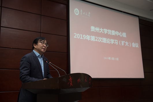 贵大新闻网讯 3月22日,校党委中心组2019年第2次理论学习(扩大)会议在北校区行政楼学术报告厅召开。南京大学原党委书记、中央马克思主义理论研究和建设工程首席专家张异宾做“致敬经典,发展21世纪的马克思主义——学习习近平总书记在纪念马克思诞辰200周年大会上的重要讲话”报告。校党委书记李建军主持会议。