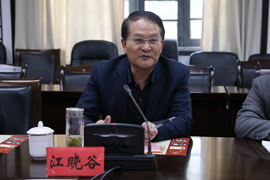 贵大新闻网讯 3月28日上午,凯里学院副院长江晓谷一行七人来校交流,交流座谈会于行政楼第一会议室召开,副校长邓朝勇出席会议,学校办公室、人事处、教务处、财务处等相关部门负责人参加交流。