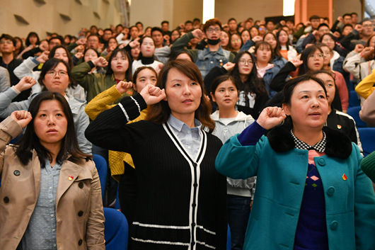 课后,令狐彩桃带领全体党员同志重温了入党誓词。