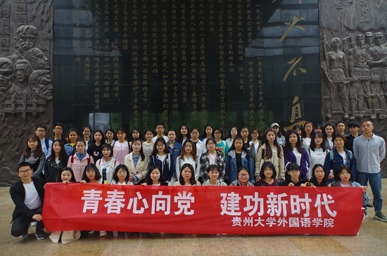 贵大新闻网讯(外国语学院 董丹丹 摄影报道)为纪念“五四运动”100周年和贯彻落实习总书记对当代青年提出的“六点希望”,5月4日,外国语学院党委以“青春心向党,建功新时代”为主题,组织学院本科生党员、党员发展对象、入党积极分子等共53人前往息烽集中营历史纪念馆进行爱国主义和革命主义教育活动。活动由学生科辅导员潘晓翎主持。