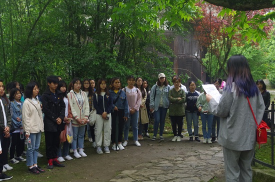 全体师生来到历史纪念馆展厅,由学院各年级各班选出的15名解说员对四个展厅可歌可泣的革命历史进行解说。此后,全体人员分组对革命历史进行演绎。话剧《小萝卜头》展现了少年有着强大的爱国信念,在虎口中为中国革命而奋斗的情景;朗诵《我的自白书》让同学们体会到革命烈士视死如归的英雄气概;在猫洞前的合唱《红梅赞》更是感染了前来参观的游客,人们纷纷拿出手机拍摄这具有爱国情怀的一幕。