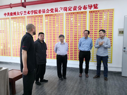 贵大新闻网迅 5月16日上午,校党委书记李建军、校长宋宝安院士到美术学院调研。党委办公室、校长办公室负责人参加调研。