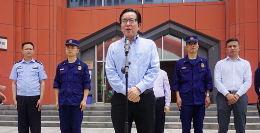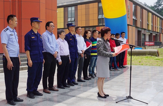 李建军宣布贵州大学2019年消防疏散演习正式开始。