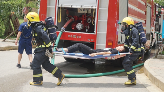 演习分为两个部分,消防疏散实战演练及灭火器材学习。