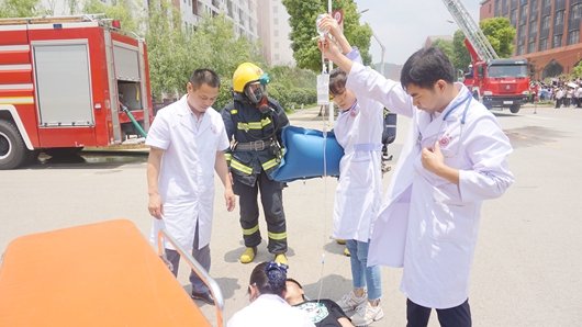 消防疏散实战演练通过特殊烟雾模拟宿舍失火的现场,学校保卫处工作人员指挥同学们有序的撤离宿舍并积极的实施救火行动,随后花溪消防大队消防官兵赶到现场营救被困同学,扑灭现场火灾,松山派出所民警及校医院医护人员也赶赴现场进行支援。最终大火被扑灭,演习成功。