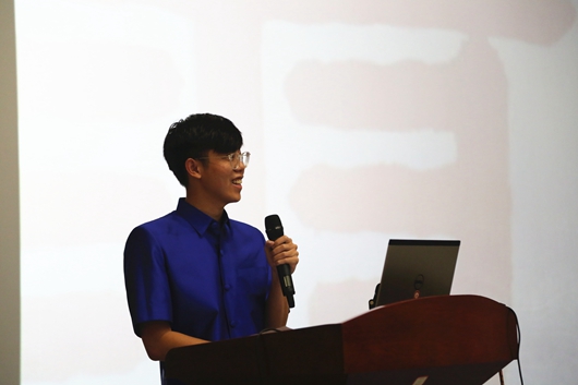 柬埔寨新生陈汉伟代表留学生新生发言,他分享了自己在中国北京留学的感受与收获,并表示会珍惜来华留学的机会,做中国和柬埔寨友好交流的使者。