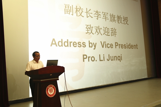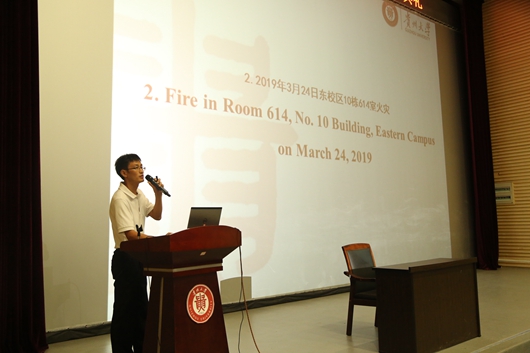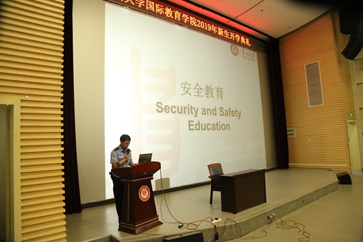 校保卫处副处长万登信作入学法律法规及安全教育。他通过大量的图片资料,从消防、交通、人身财产安全等方面为新生普及校园安全知识,希望以此提高留学生们的安全防范意识、学会自我保护。