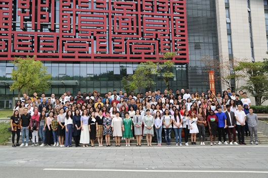 贵大新闻网讯 9月12日上午,国际教育学院2019年留学生新生开学典礼在西校区图书馆一楼报告厅举行。副校长李军旗出席典礼,学校相关部门负责人与贵阳市和花溪区有关单位负责同志以及来自51个国家的300余名留学生新生及国教院全体老师参加典礼。典礼由国际教育学院党委书记晋克俭主持。