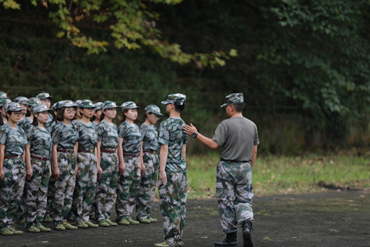 教官代表涂燕茹代表全体军训教官发言。她号召全体军训学员借此机会,健身强志,炼人体魄。