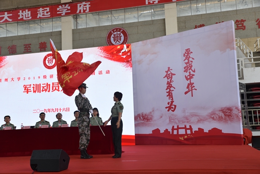 动员大会上,令狐彩桃表示,多年来,我校研究生入学军训已成为学校一项传统,是加强学生爱国主义、集体主义以及培育和践行社会主义核心价值观的重要一课,实践证明,其效果明显并深受广大师生认可。她要求,所有工作人员做好统筹协调、服务保障等工作,做到“零失误”、“零事故”;各位教官做到严肃态度、严格要求、严密组织、严格训练;各位参训同学做到遵守时间,坚持训练,争做优秀学员。随后令狐彩桃为2019级研究生授军训师成立旗。