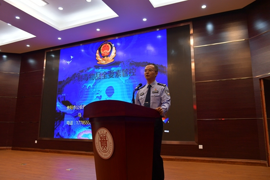 贵阳市公安局禁毒支队易制毒化学品管理科科长、贵阳市公安局花溪分局副局长马勇作易制毒品管理专题报告,详细介绍了新时期毒品形势、制毒物品全要素管控等内容。