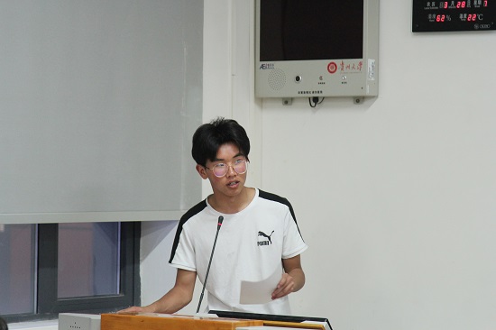 贵大新闻网讯(阳明学院 王丽 钟奎 报道|摄影 钟奎)为讲好四史故事,弘扬爱国精神,5月9日,阳明学院工学一部在西校区明俊楼340教室举行“阳光征程,明日可期”四史演讲比赛,本次活动以“学党史、感党恩、听党话、爱祖国、强贵大”为主题,来自机械设计制造及其自动化(以下简称“机自”)2001-2007班及农业机械化及其自动化(以下简称“农机”)2001班的11名同学参加比赛,活动由机自2005班团支书罗瑞品担任主持人。