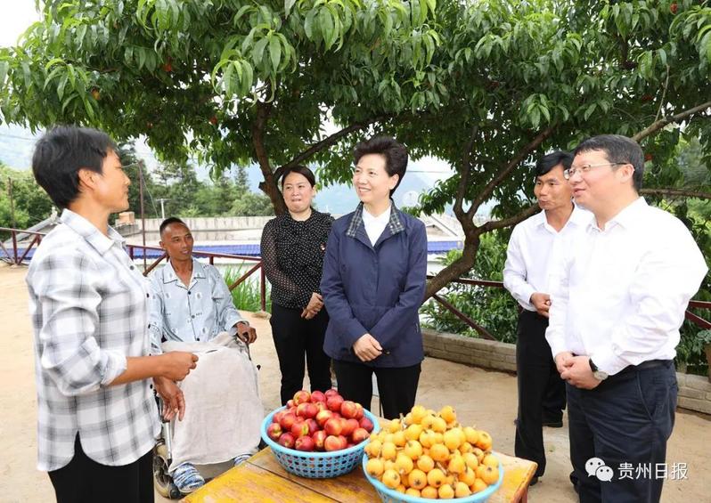 六盘水市是全省较早实现整体脱贫的市州,脱贫攻坚成果巩固拓展得怎么样,同乡村振兴衔接得实不实,是谌贻琴此行调研的重点。她来到水城区营盘乡高峰村,走进脱贫群众家中走访慰问,仔细察看生活物资,详细了解“两不愁三保障”及饮水安全巩固等情况,看到群众生活越来越好,她非常高兴,祝福乡亲们日子越过越红火。在高峰村村委会,谌贻琴亲切看望驻村干部,勉励新老驻村干部交好接力棒,接续推动乡村振兴。她还走进营盘小学与师生亲切交流,强调要深化感恩教育,引导学生珍惜幸福生活、刻苦学习、回报社会。产业兴旺是乡村振兴的基础,谌贻琴来到盘州市盘关镇天富刺梨基地、羊场乡软籽石榴产业基地,详细了解产品研发、市场销售、利益联结、带动农户等情况,强调要更加突出市场导向,进一步提高品质、做大规模、做强品牌,不断延长产业链、提高附加值,推动乡村产业发展壮大。韩伟蛋业有限公司是辽宁省大连市对口帮扶六盘水市的重点项目之一,谌贻琴对辽宁省、大连市和韩伟集团的帮扶表示感谢,对企业助推当地巩固拓展脱贫攻坚成果的做法予以高度赞誉,希望企业和地方共同努力、加快发展,在乡村振兴开新局中发挥更大作用。