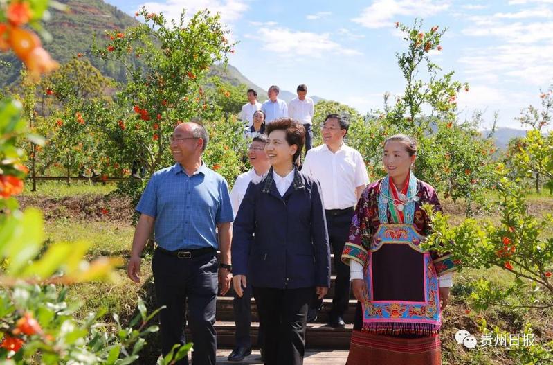 谌贻琴在盘州市羊场乡软籽石榴产业基地考察