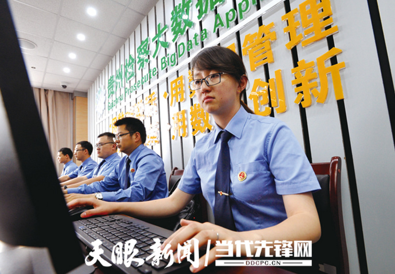 在贵州省人民检察院大数据应用中心,工作人员录入数据。全省政法系统把大数据应用到司法体制改革各个环节,办案质量和效率显著提升。(来源《多彩贵州美美与共》画册)