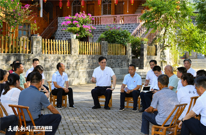 江口县云舍村是一座以土家族为主的村落,近年来在各级党委政府和有关各方关心支持下,大力发展乡村旅游,村民人均可支配收入超过1.8万元,日子过得红红火火。李炳军走进农家乐餐馆、特色民宿,仔细了解经营情况和乡亲们的生产生活情况,与基层党员干部、村民代表、乡村旅游经营户等召开院坝会,面对面宣讲习近平总书记“七一”重要讲话精神。大家有感而发,纷纷讲述这些年村里发生的巨大变化,表示一定要感党恩、听党话,坚定不移跟党走。李炳军说,习近平总书记的重要讲话,庄严宣告全面建成小康社会,历史性地解决了绝对贫困问题,中华民族伟大复兴进入不可逆转的历史进程,贵州各族干部群众深受鼓舞、由衷自豪。我们要充分认识百年来党团结带领人民不懈奋斗的光辉历程和伟大成就,深刻理解中华民族伟大复兴这个主题,继承发扬伟大建党精神,扎实巩固脱贫攻坚成果,全面推进乡村振兴,奋发有为向第二个百年奋斗目标迈进。基层党组织和党员干部要发挥战斗堡垒和先锋模范作用,始终想在前、干在前,带动群众增收致富。
