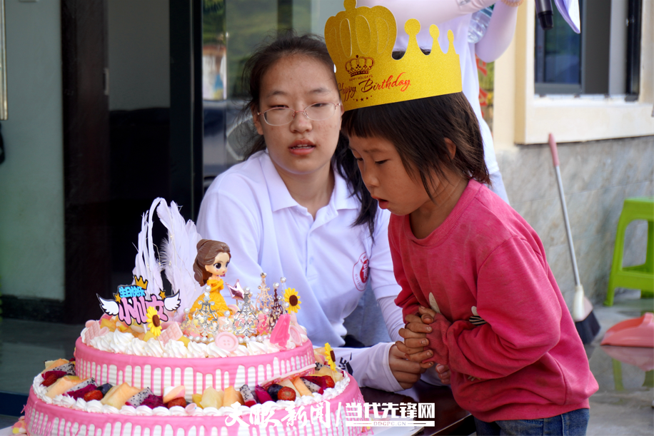 今年9岁的潘国田是潘国娟姐姐,在活动室一起为妹妹过生日的她对于贵州大学暑期“三下乡”社会实践队的哥哥姐姐很感谢,“哥哥姐姐们这几天都到家里面辅导我做作业,我的作业都做完了,今天还给妹妹过生日,蛋糕很甜,我心里更甜,哥哥姐姐们真的很好。”