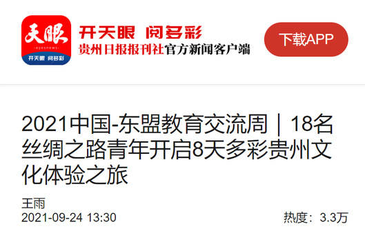 9月23日,由贵州省教育厅主办,中国-东盟教育交流周组委会秘书处与贵州大学承办,江苏大学与中泰高等教育合作联盟协办的“2021年‘知行贵州’丝绸之路青年交流计划——多彩贵州文化体验之旅”开班仪式在贵州大学举行。