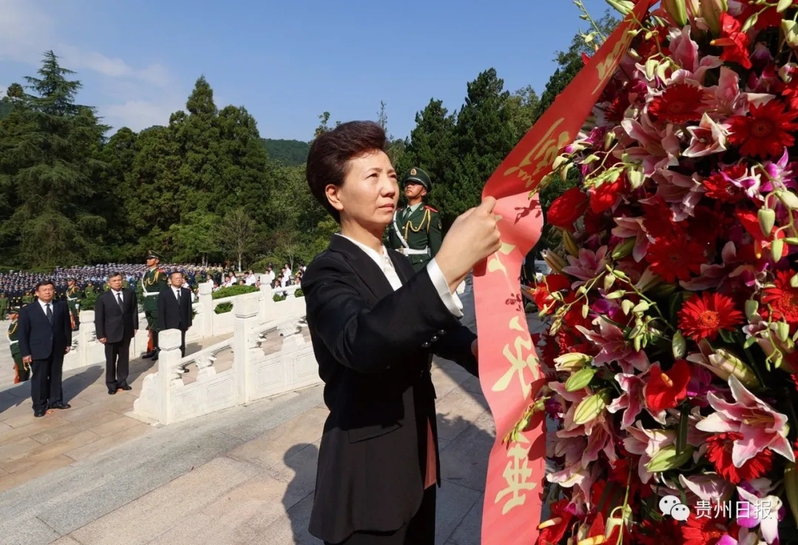 贵州省和贵阳市党政机关、人民团体主要负责同志、干部职工,解放军、武警官兵、公安干警,老战士、老同志、烈士遗属及社会各界人士代表约1000人参加敬献花篮仪式。