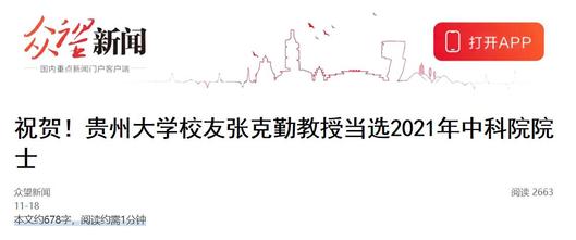 11月18日,中国科学院正式公布2021年院士增选结果,贵州大学杰出校友张克勤教授当选中国科学院院士。